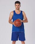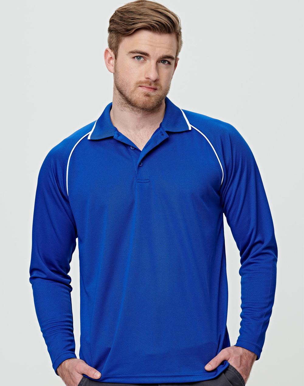 Description: Mesh. Wicks moisture away from the body. V-neck collar with centre patch that can be embroidered with logo. Contrast colour front and back shoulder inserts and accent piping. Double needle hemmed arm holes and bottom.