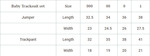 | Body Width (cm) | 52.5 | 55 | 58.5 | 61 | 63.5 | 66 |